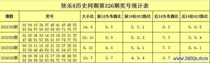 大小比分析:在积年第326期同时开奖中,奖号大小总比例为45:35,大号走势相对较热,前年同时号码大小比为13:7,小 号走势相对较冷,本年第326期同时留神小 号回补转热,参考大小比8:12。